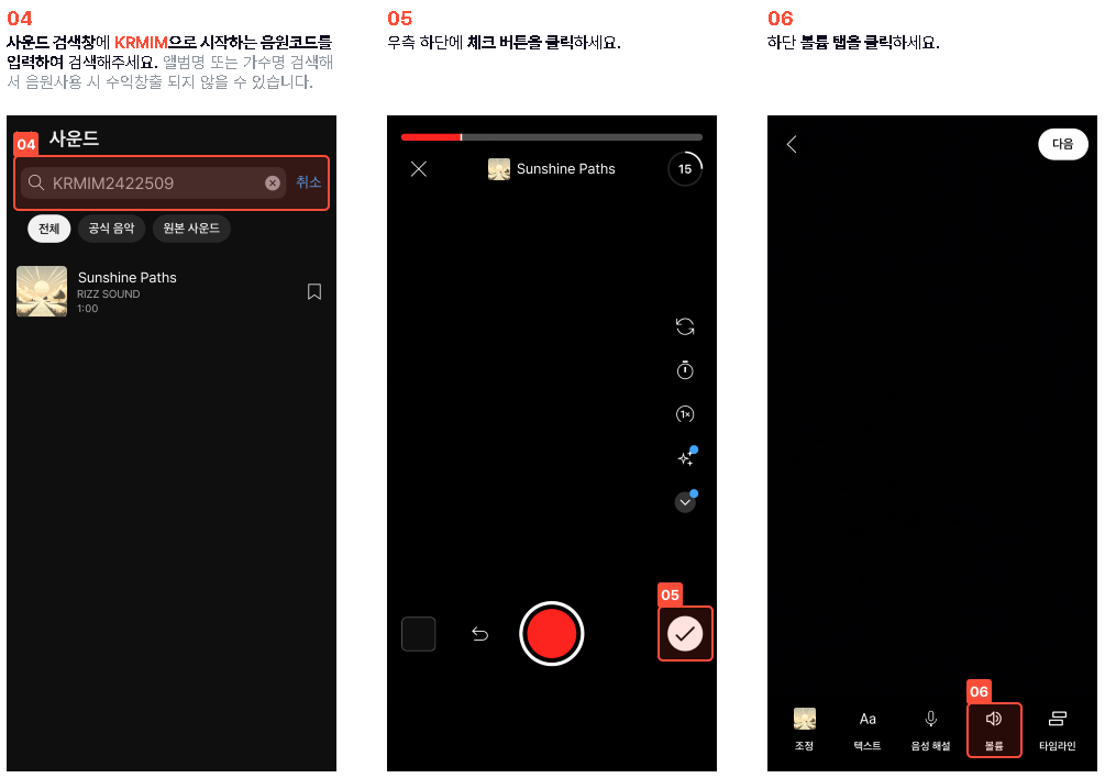그 음원을 사용하여 함께 쇼츠 영상을 업로드하시면 됩니다.
